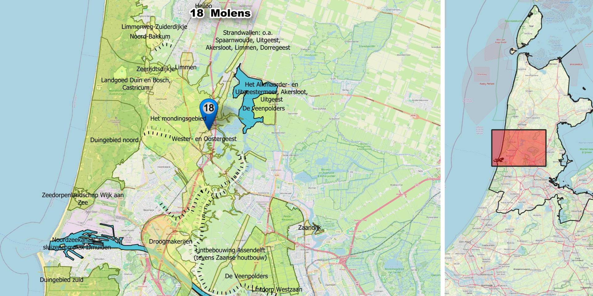 Molens hebben in het vlakke en windrijke Oer-IJ gebied vanaf de vijftiende eeuw een grote rol gespeeld in het aanzien van het landschap. Nog altijd zijn er verspreid door het gebied de nodige watermolens te zien De Kat (Uitgeest), De Dog (Uitgeest) , Noordermolen (Akersloot), Tweede Broekermolen (Uitgeest), De Woudaap (Krommeniedijk), Wimmenummermolen (Egmond a.d. Hoef, De Bosmolen (Egmond a.d. Hoef), De Dorregeestermolen (Uitgeest). Een aparte categorie vormen de industriemolens (zie hiervoor 40).